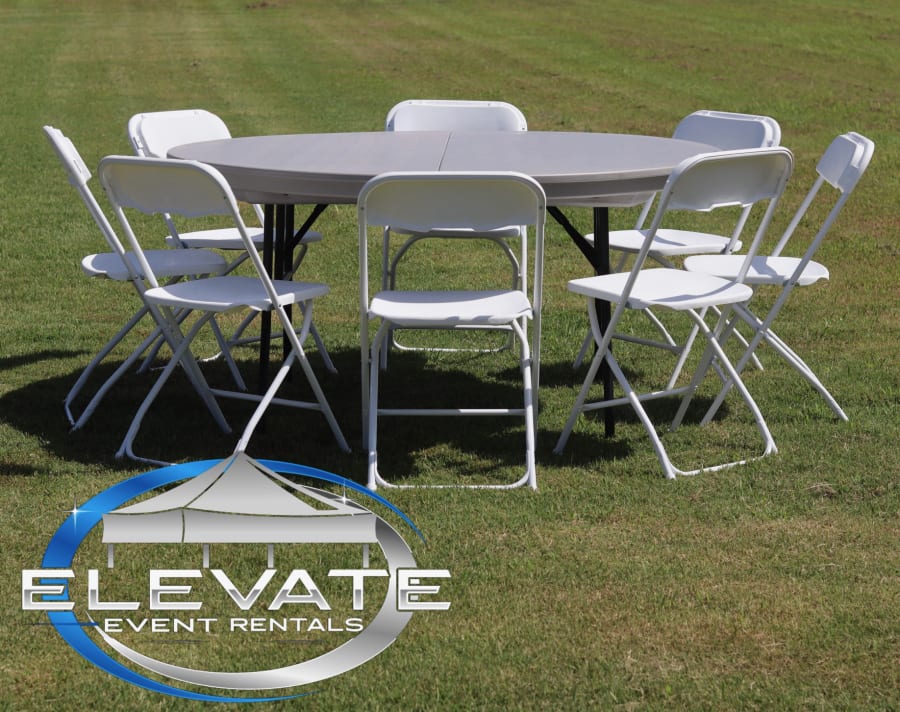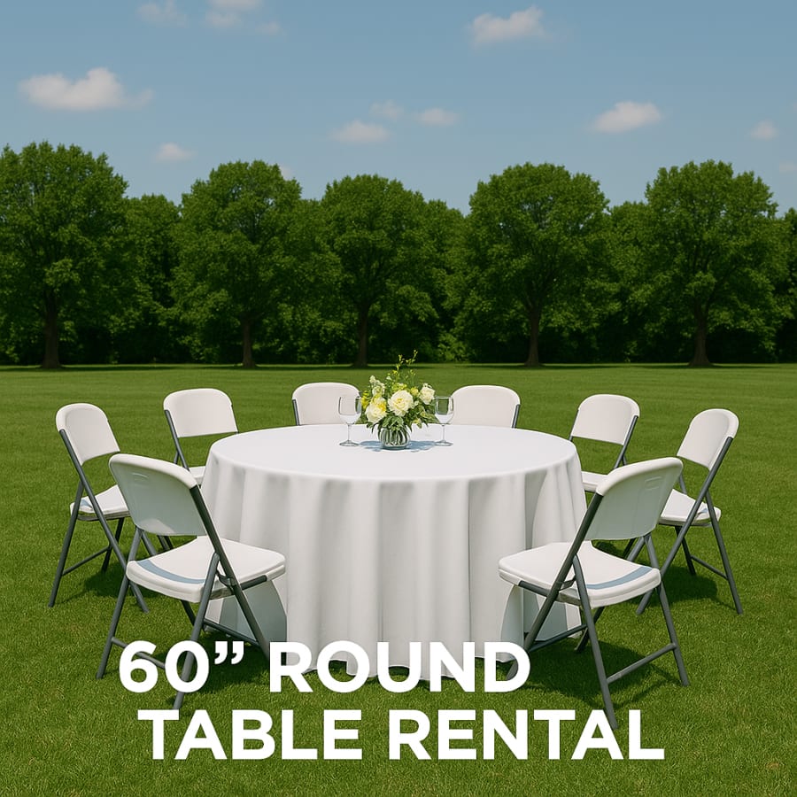Looking for the perfect table to bring your gathering together? Our 60" Round Table is the ideal centerpiece for any occasion. Whether you're planning a wedding reception, corporate event, family reunion, or backyard celebration, this spacious and sturdy table offers both style and functionality. With its generous size and classic round design, everyone at your event will have a seat at the table! If you are looking for a 8ft rectangle table we can accommodate that as well. Needing chairs as well? We have you covered with our chair rental, add our white folding chairs to complete your table and chair rental!